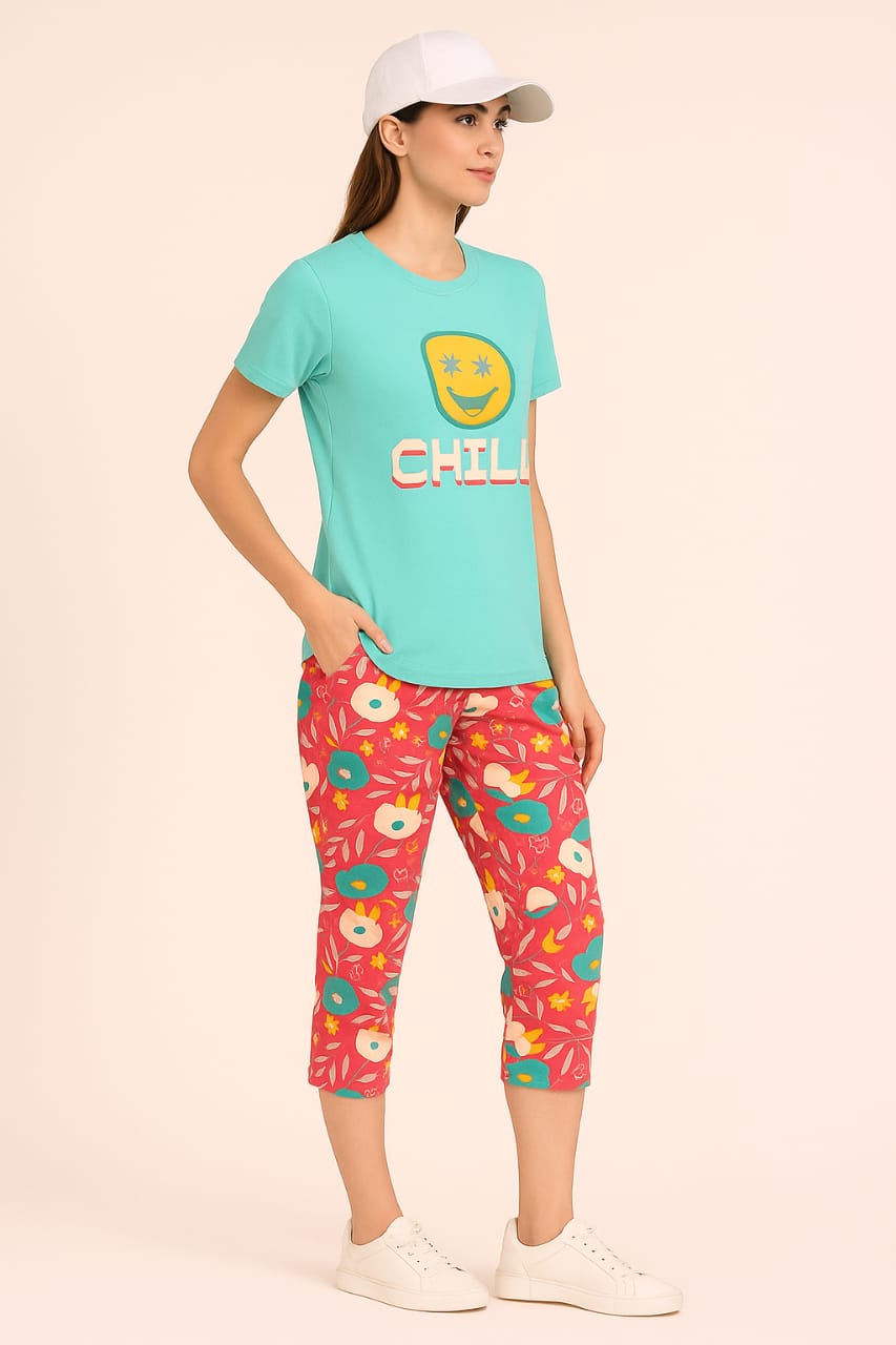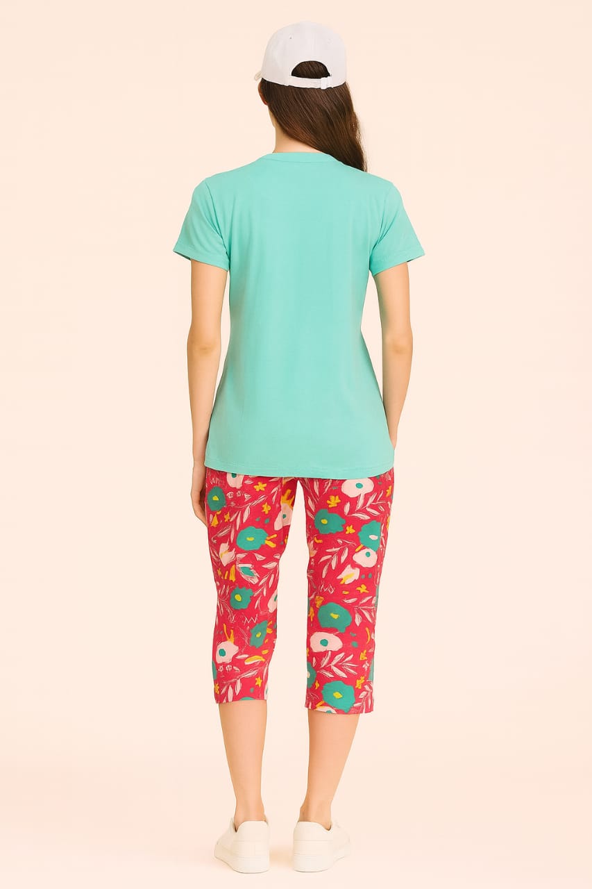 Women's Loungewear Capri Pant Set - Aqua Blue